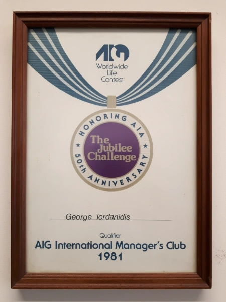 Συμμετοχή στο Διεθνές Club των Managers της AIG για το 1981.