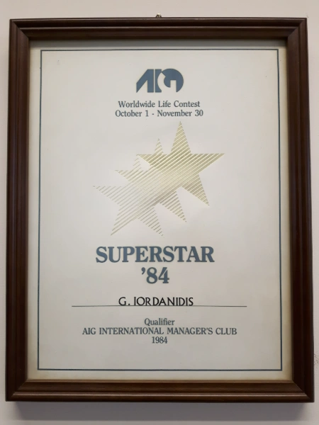 Συμμετοχή στο Διεθνές Club των Managers της AIG για το 1984.