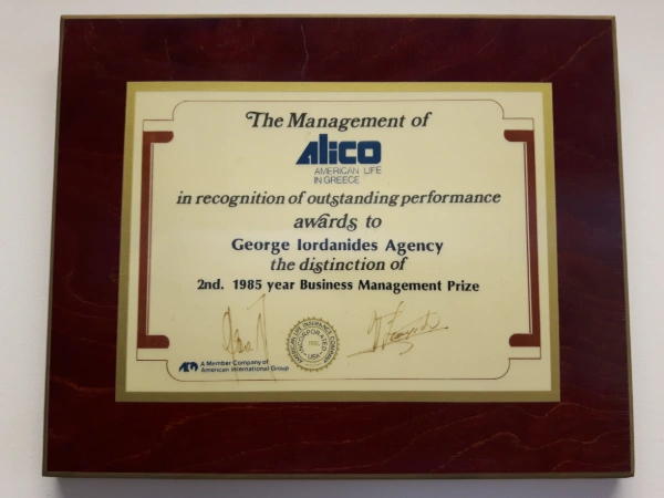 Βραβείο για τη 2η θέση, Γραφείου Πωλήσεων Καλύτερης Επίδοσης για το 1985 στην Ελλάδα.