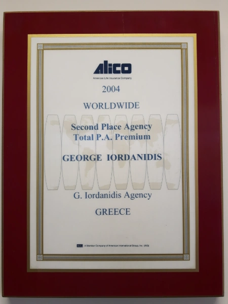 • Βραβείο για την 2η θέση, Γραφείου Πωλήσεων σε Εισπραχθέντα Ασφάλιστρα Συμβολαίων Προσωπικών Ατυχημάτων και Υγείας Παγκοσμίως για το 2004.