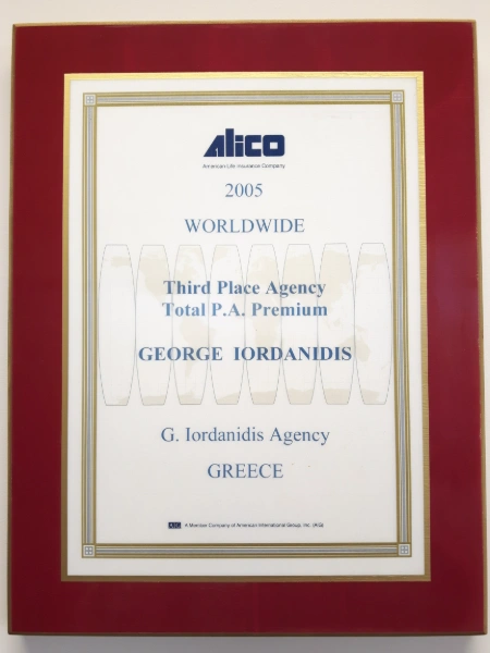 • Βραβείο για την 3η θέση, Γραφείου Πωλήσεων σε Εισπραχθέντα Ασφάλιστρα Συμβολαίων Προσωπικών Ατυχημάτων και Υγείας Παγκοσμίως για το 2005.