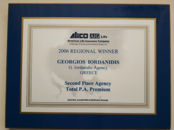 • Βραβείο για την 3η θέση, Γραφείου Πωλήσεων σε Εισπραχθέντα Ασφάλιστρα Συμβολαίων Προσωπικών Ατυχημάτων και Υγείας στην Ελλάδα για το 2006.