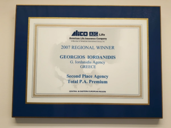 Βραβείο για την 2η θέση, Γραφείου Πωλήσεων σε Εισπραχθέντα Ασφάλιστρα Συμβολαίων Προσωπικών Ατυχημάτων και Υγείας στην Περιφέρεια Κεντρικής και Ανατολικής Ευρώπης για το 2007.