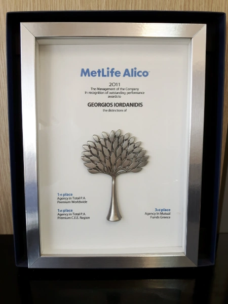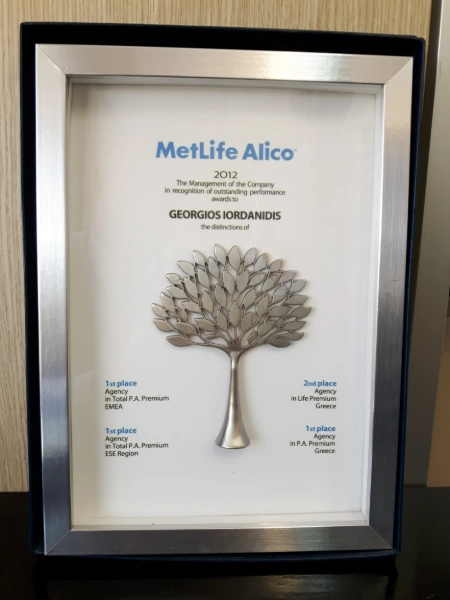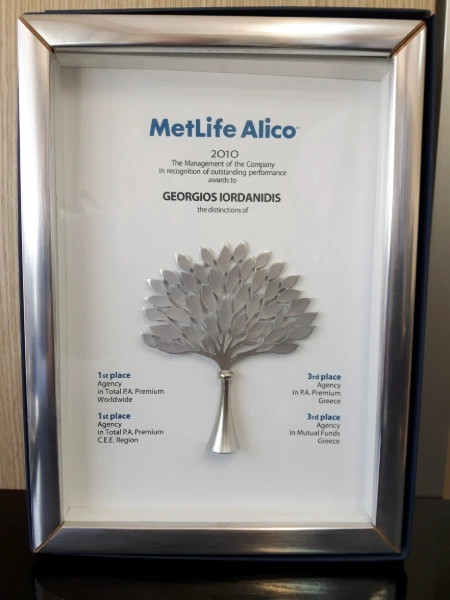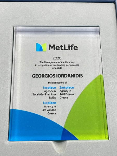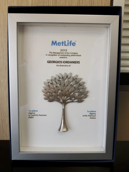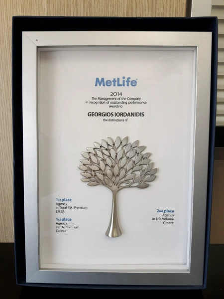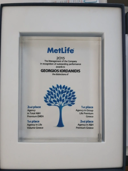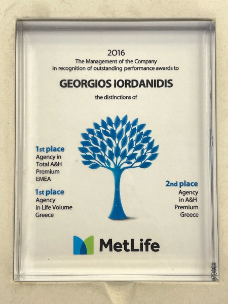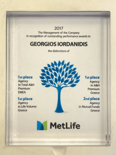 • Τιμητική Διάκριση για τα 35 χρόνια ζωής και συνεργασίας του Υποκαταστήματος Πωλήσεων Γ. Ιορδανίδη, με τη MetLife.